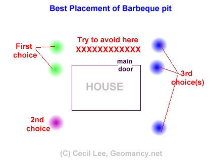 1. Frontage of the house - avoid if possible any placement of a barbeque pit at the frontage of the house (especially in-front of the main door and along the frontage (if possible).