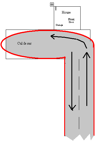 But, based on what you had drawn, with the road coming into your front of the house, I would say that your house (based on this intitial findings) is a `direct hit' or threated by the road and cul de sac.