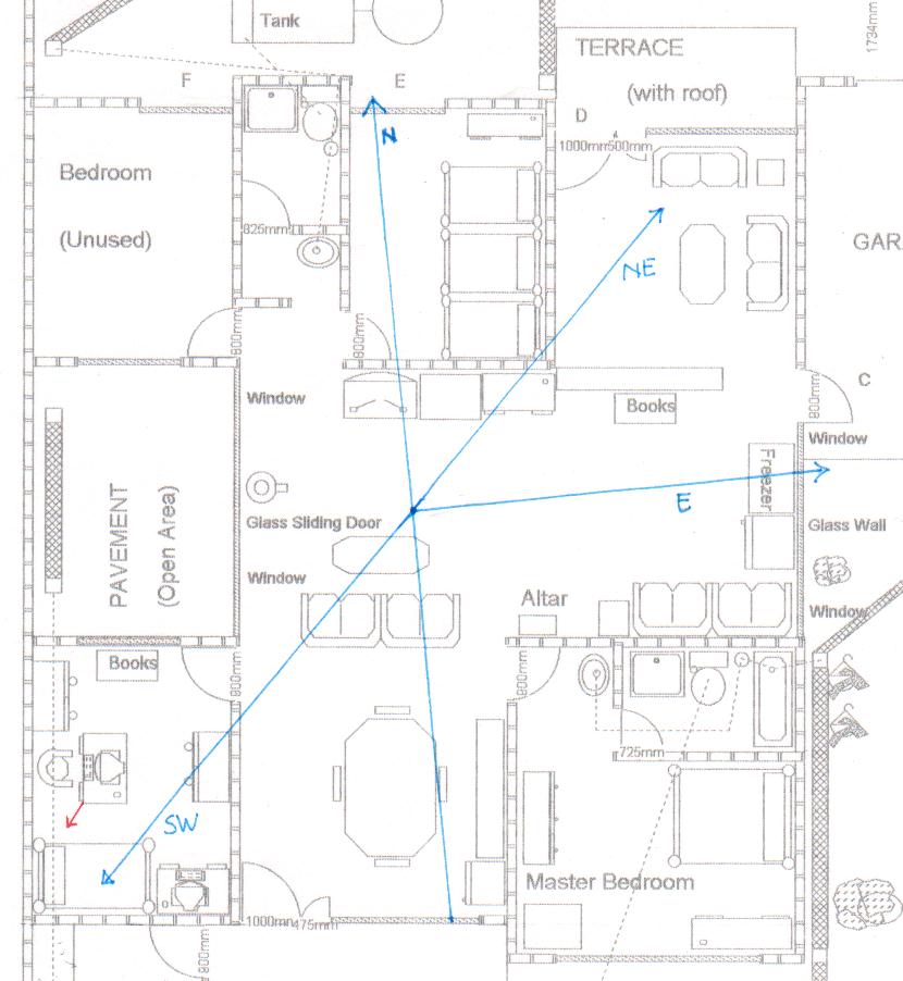 After reading your article: Interpreting Intangible Forces and considering the breadwinner's Gua number is 8, I made new arrangements of my furnitures. In living room, I switched Freezer & Refrigerator to desk's position, and vise versa (NE and E sectors). In my room (SW sector), I switched computer desk and wardobe. Please see before.jpg for the previous positions. I did it because the electronics appliances were on NE and SW lines. You may see the current positions at after.jpg.